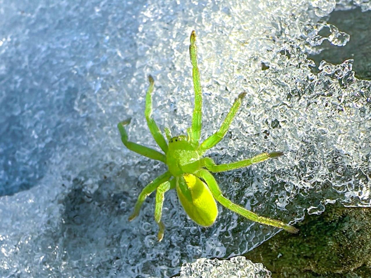 Ярко-зеленый паук замечен на снегу у Телецкого озера