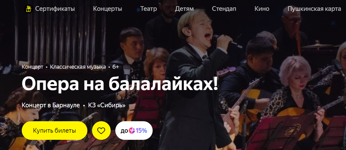 Оркестр «Сибирь» представит программу «Опера на балалайках» 7 февраля в 17:00 в КЗ «Сибирь». В афише — известные арии и отрывки из опер Россини, Пуччини, Бизе, Верди, а также из оперетт и рок-опер. Стоимость посещения — от 600 до 1200 рублей.