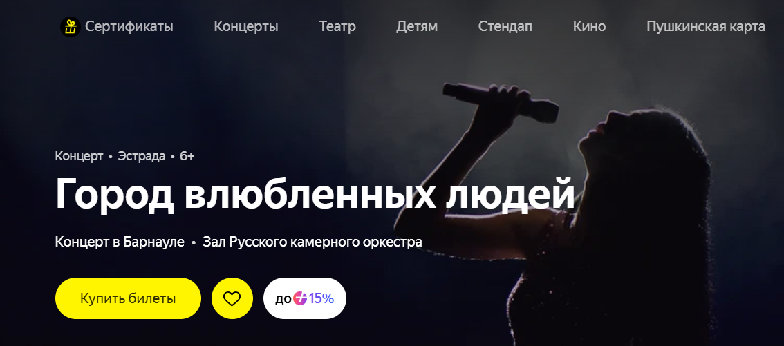 Зал Русского камерного оркестра 7 февраля в 17:00 примет заслуженную артистку Республики Алтай Татьяну Лашутину. Она представит программу «Город влюбленных людей», состоящую из романсов и песен о любви. Цена билета — 500-600 рублей.
