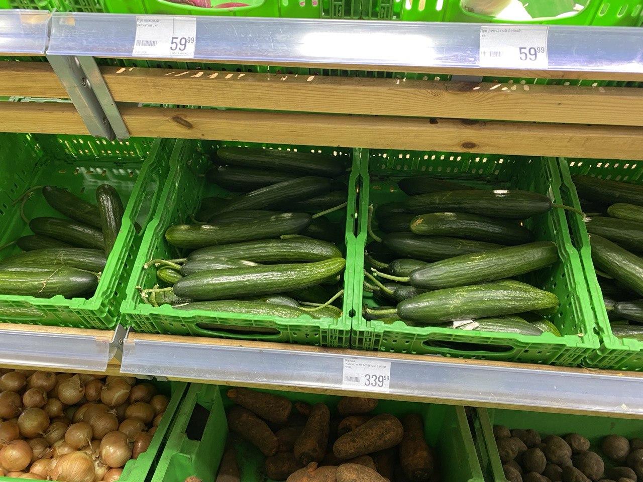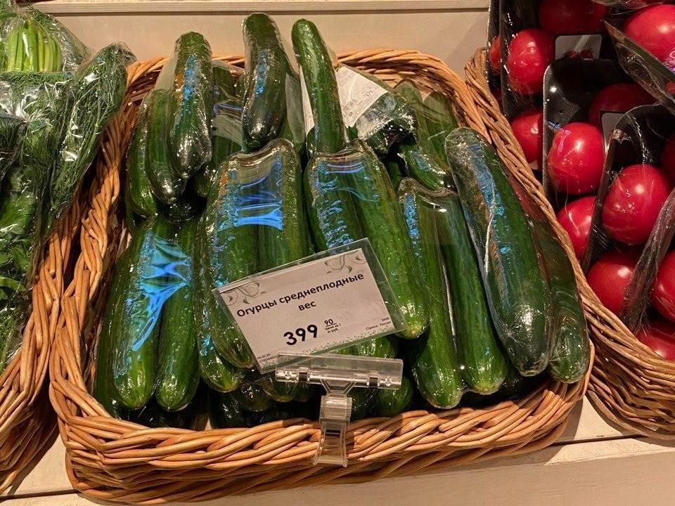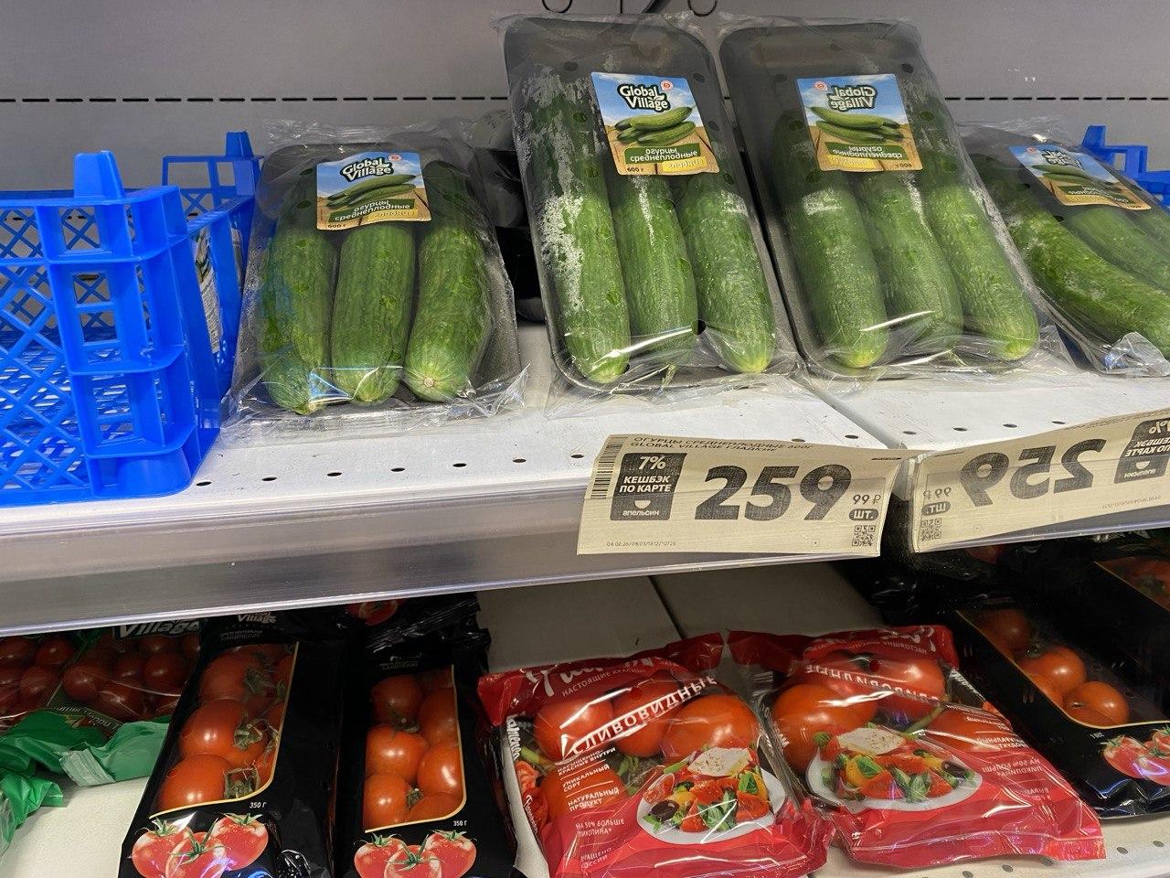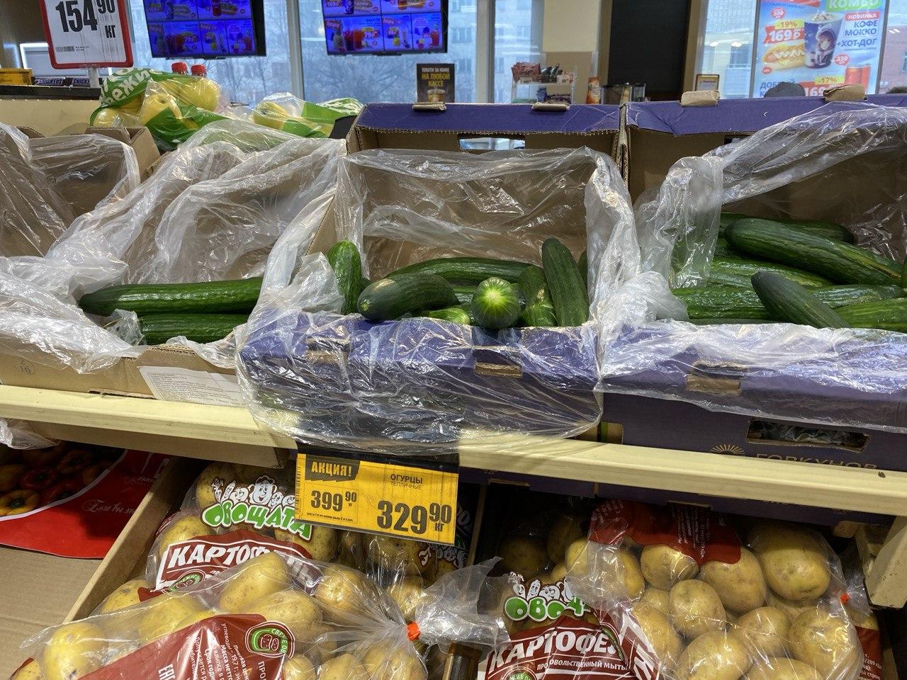 - В «Магните» ценник указан 239 рублей за килограмм, но эти огурцы уже раскуплены.
