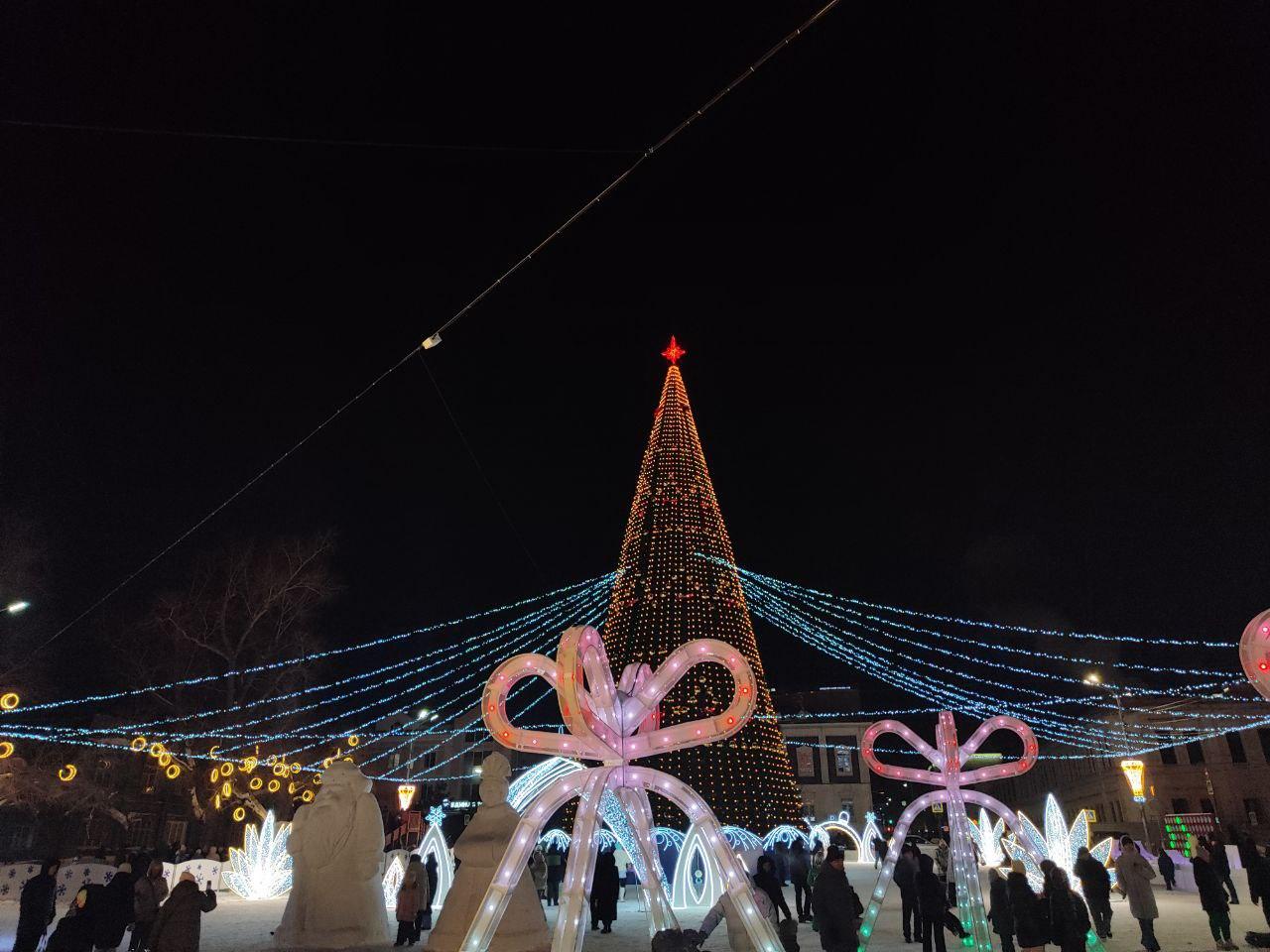Центром пространства служит главная ёлка на площади Свободы. Возле неё смонтирована горка, привлекающая и детей, и взрослых. За безопасностью посетителей следят дежурные.