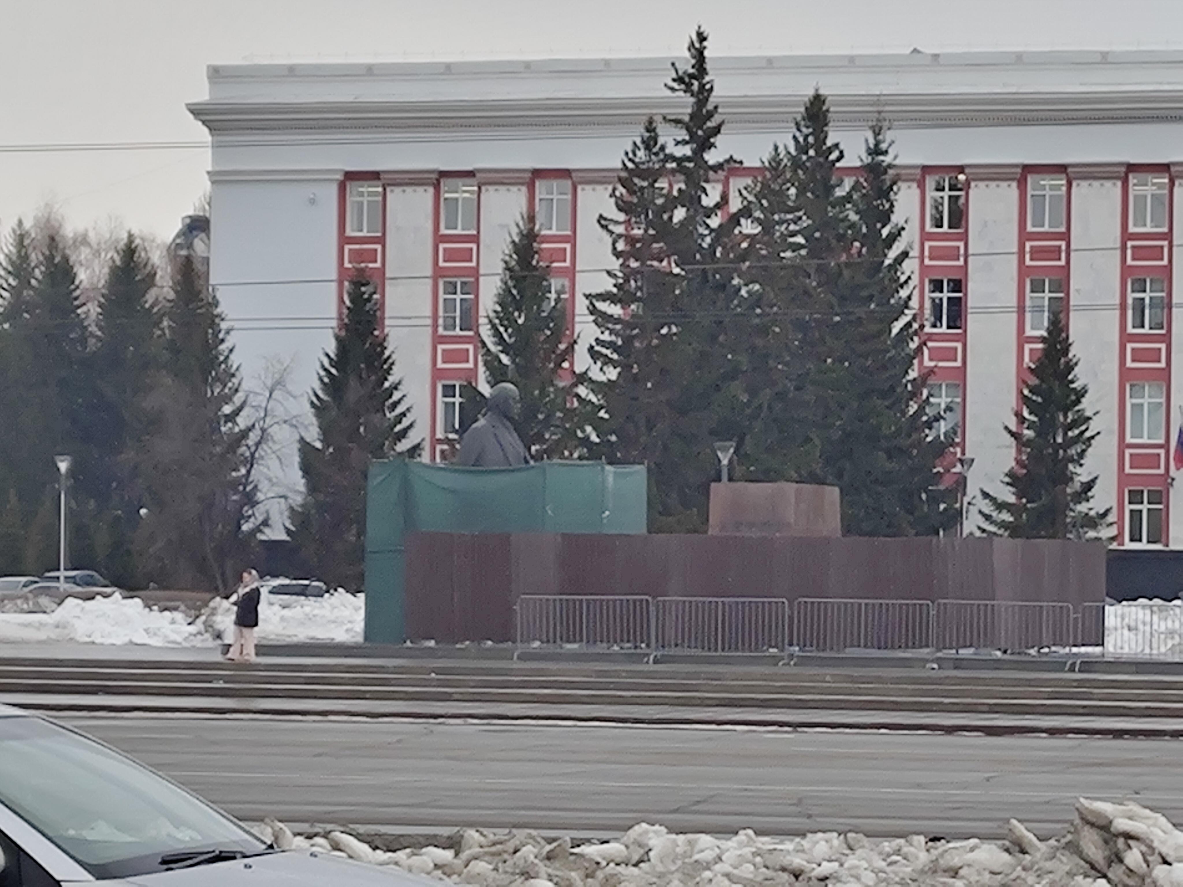 Памятник Ленину после временного демонтажа в Барнауле