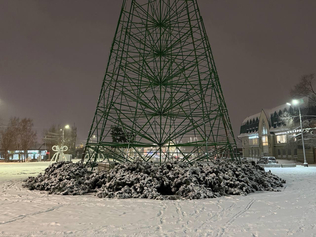 Каркас главной новогодней ёлки уже установлен на площади Свободы