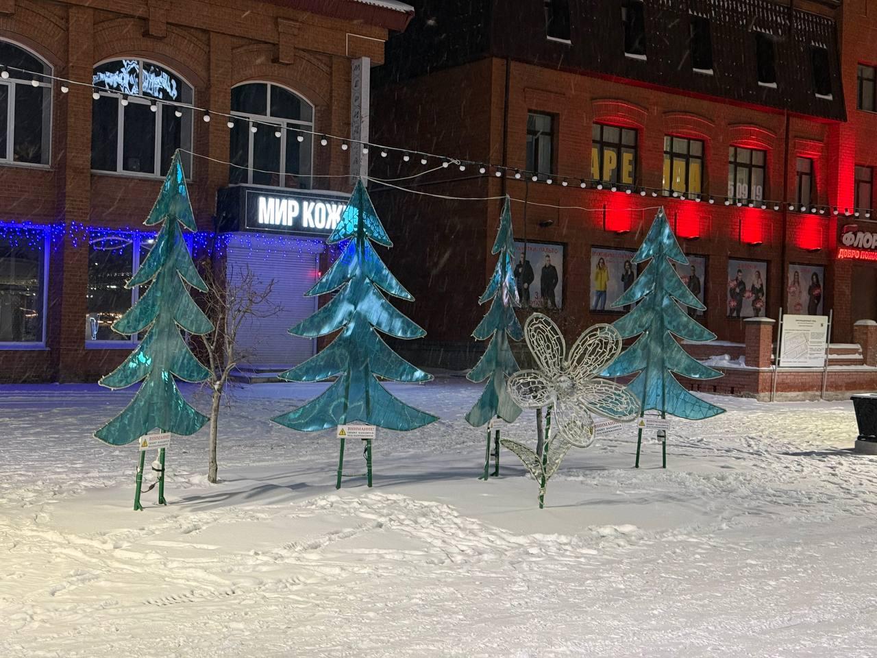 Больше всего новогодних элементов уже можно увидеть в Центральном парке. Здесь установили и украсили ёлку, работают светящиеся качели, смонтирован световой фонтан и другие декоративные объекты. Локация готова для вечерних прогулок и фотосессий.