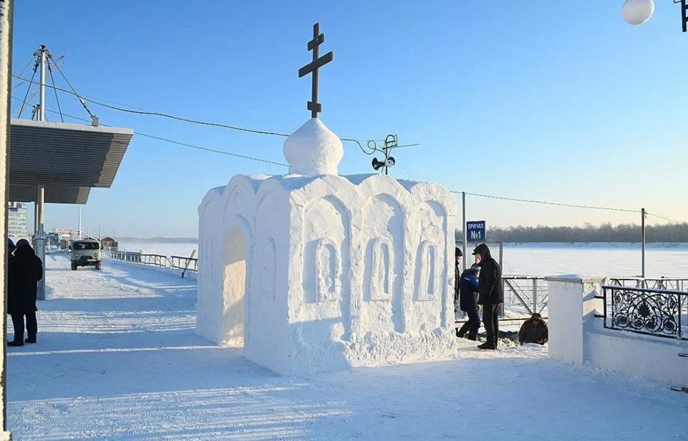На реке Обь идут финальные работы по обустройству Крещенского городка и купели. Ближе к празднику там установят надувные палатки для переодевания и обогрева.