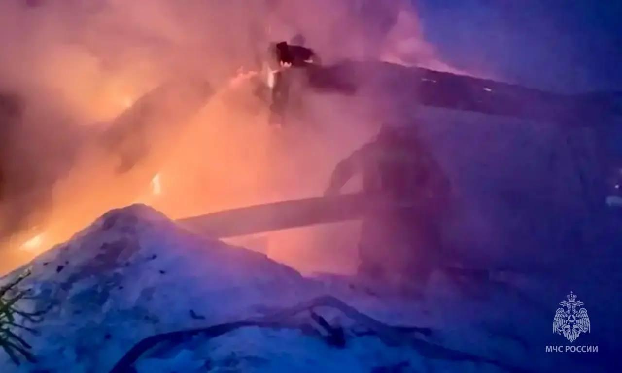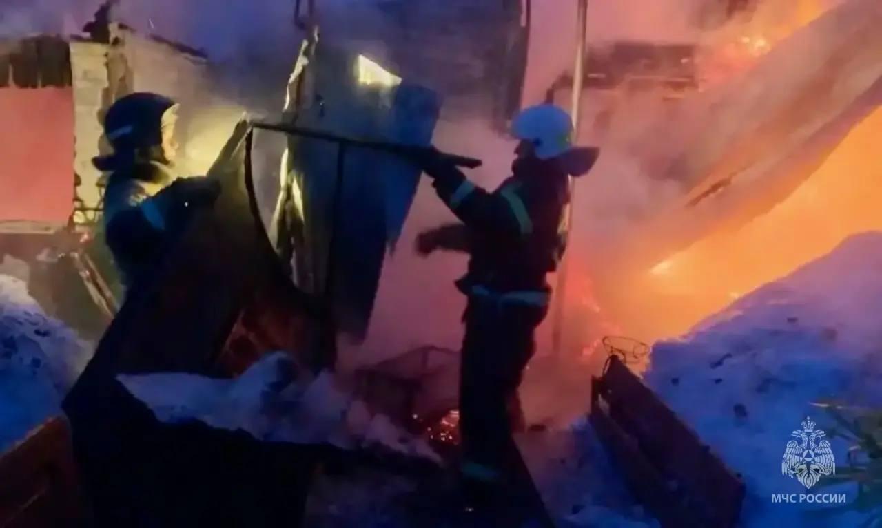 По предварительным данным, пожар начался из-за перекала печи в бане.
