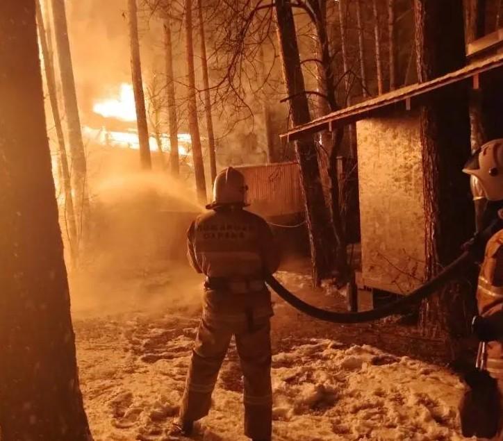 При пожаре в кафе на алтайской базе отдыха никто не пострадал. Огонь уничтожил здание площадью 240 квадратных метров.