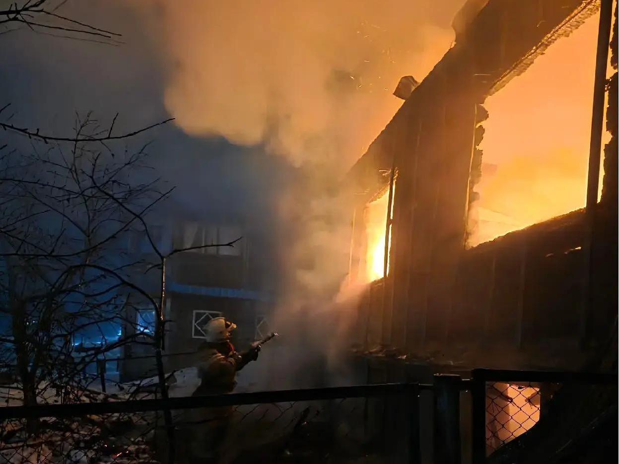 На Алтае в двухэтажном доме вспыхнул пожар на 80 м²