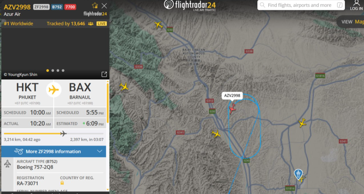 Экипаж воздушного судна сообщил о бедствии. Самолет авиакомпании Azur air кружит над аэропортом Ланьчжоу, готовясь к аварийной посадке.