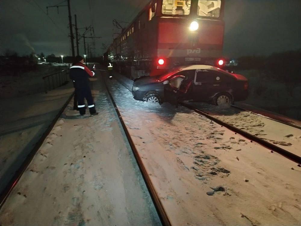 Авария произошла на железнодорожном переезде, когда водитель проигнорировал запрещающий сигнал светофора. Он получил травмы и был доставлен в больницу.