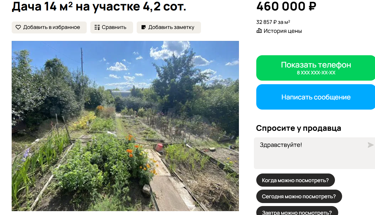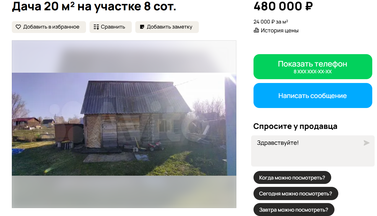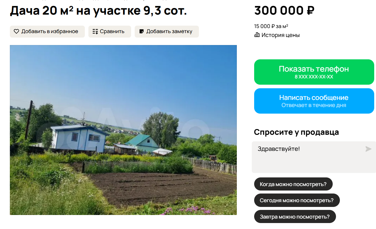 Самое доступное предложение — в Гоньбе за 300 тысяч рублей. Включает одноэтажный дом площадью 20 квадратных метров и участок в 9,3 сотки. Возможна покупка только половины надела — около 5 соток.