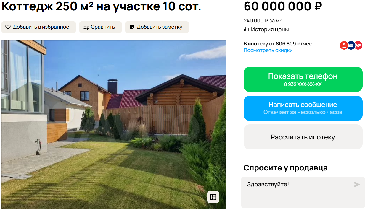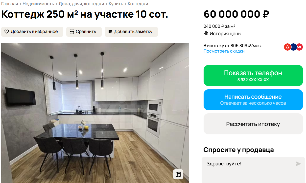 На площадке Avito появилось объявление о продаже современного коттеджа на улице Абаканской в Барнауле. Цена объекта составляет 60 миллионов рублей.