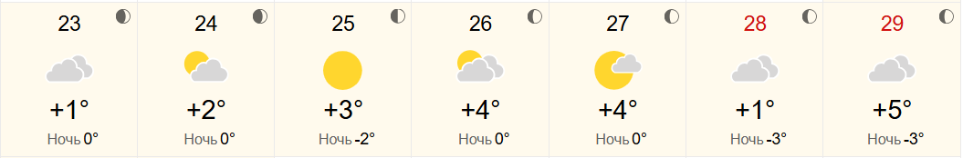 В выходные дни термометры покажут от +1 °C до +5 °C по данным World-weather.