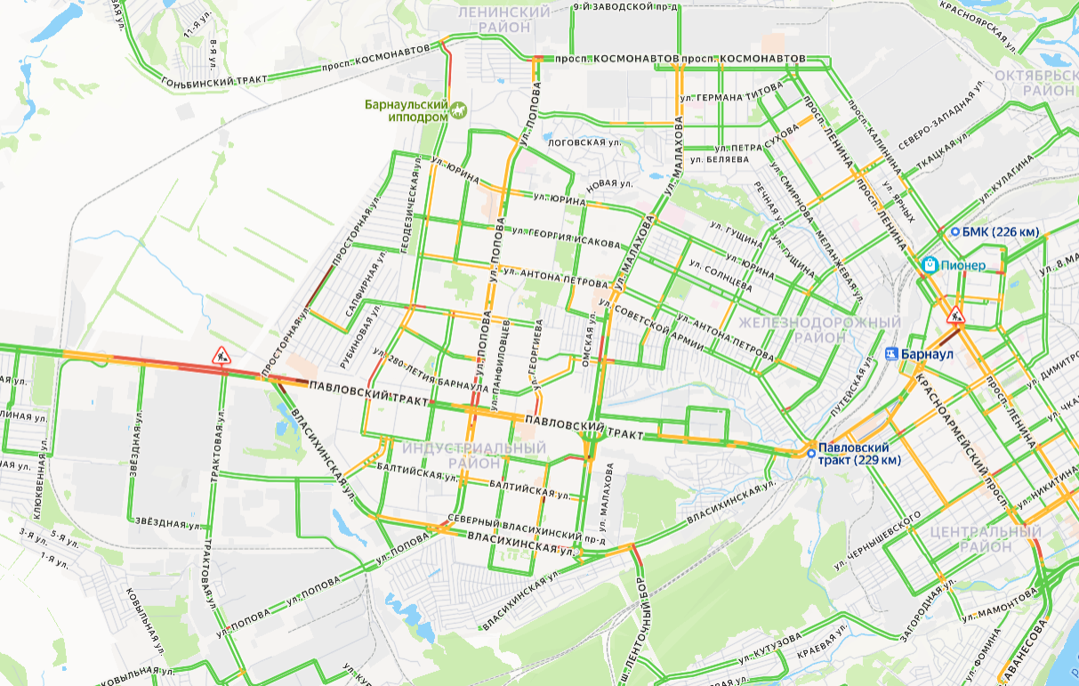 Наибольшие заторы зафиксированы на Павловском и Змеиногорском трактах