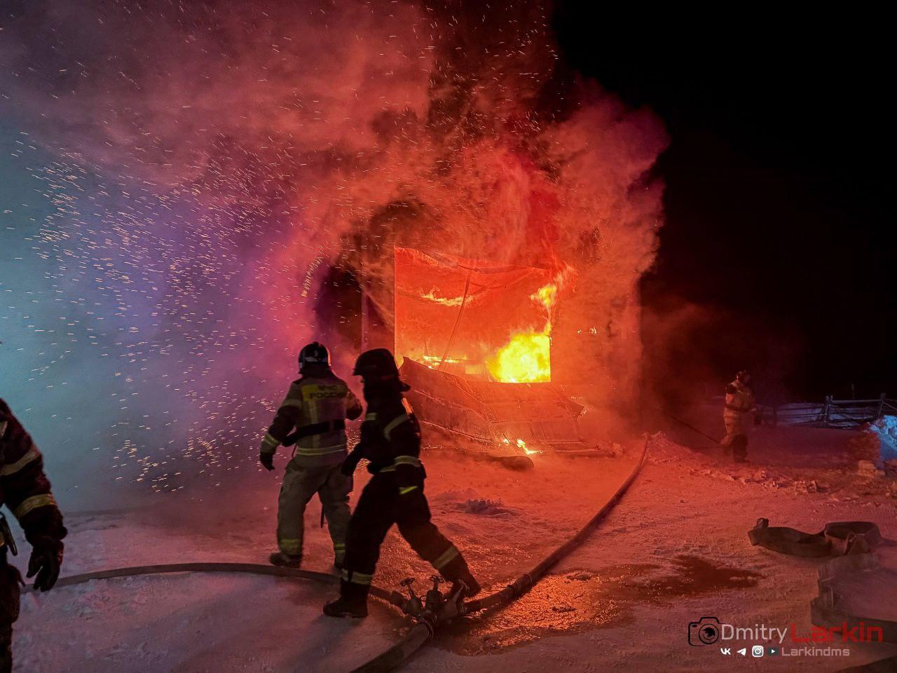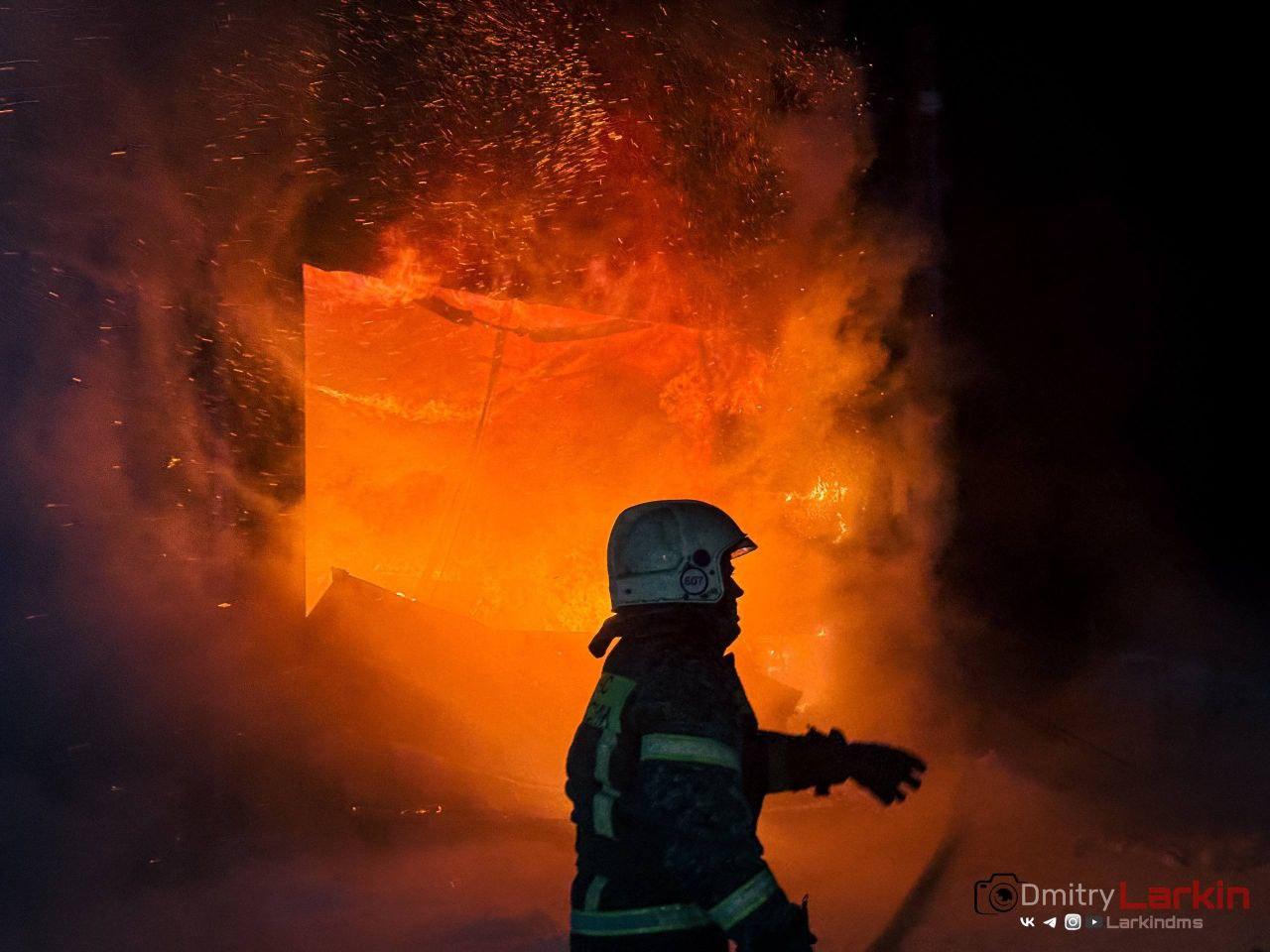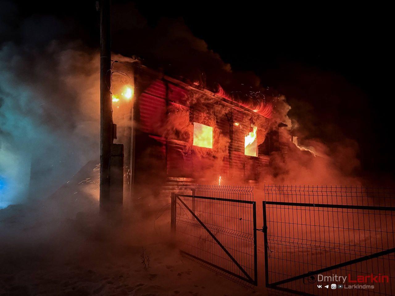 В поселке Бельмесёво огонь охватил надворные постройки, создав угрозу для жилого дома. Площадь пожара составила около 70 квадратных метров. Спасатели эвакуировали два газовых баллона из гаража. В результате происшествия полностью сгорели трактор и легковой автомобиль.