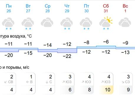 «Яндекс Погода» также предсказывает относительно теплую для зимы погоду. В начале недели днем будет -10…-9 градусов, ночью от -17 до -12. В это время в регионе пройдет снег.