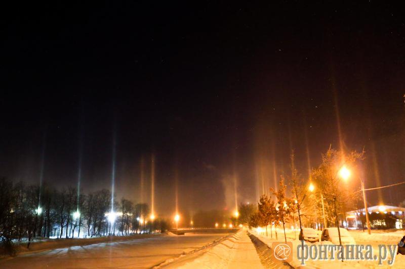 Световые столбы обычно наблюдаются после сильных морозов.